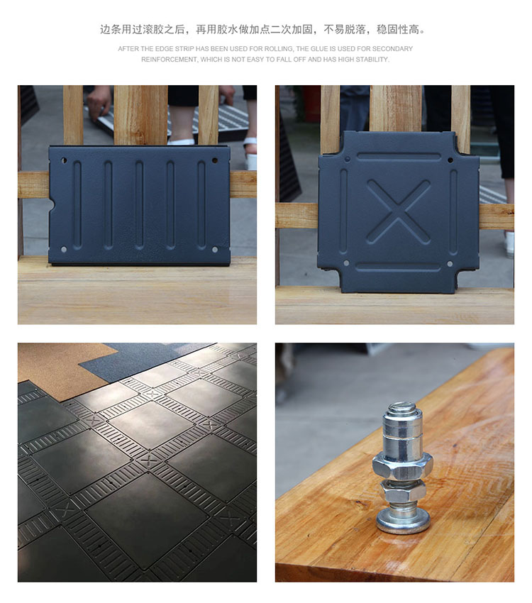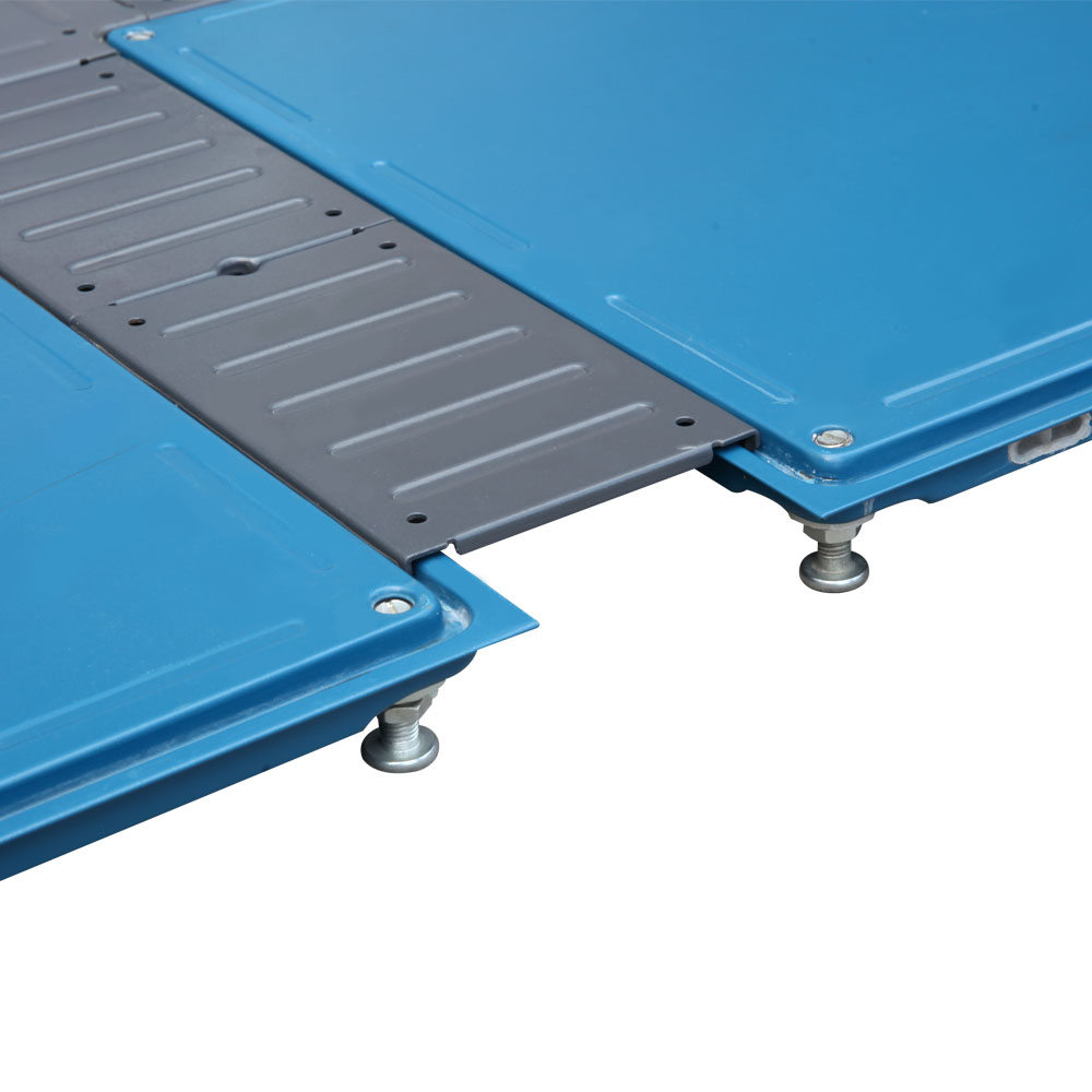 OA(線槽)網(wǎng)絡(luò)地板其結(jié)構(gòu)為四角獨立支撐結(jié)構(gòu),扣槽式線槽蓋板使地板安裝完之后連接穩(wěn)定,不松動,地板采用鋼板經(jīng)拉伸成型、點焊、噴塑、內(nèi)腔填充 發(fā)泡水泥填料,支座為鍍鋅,高度可調(diào)并能自鎖。主要組件有:地板、邊蓋板、角蓋板、角底板、支架。